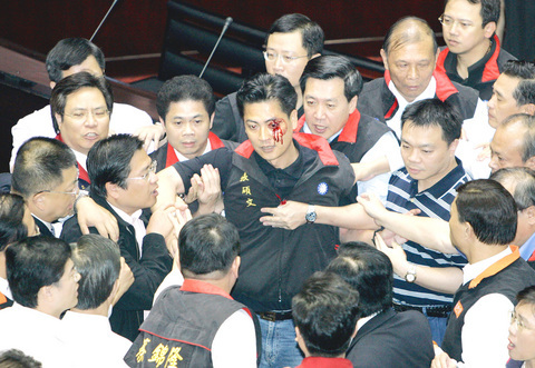 Amid bloodshed and fisticuffs, yesterday's legislative sitting accomplished little as the showdown over the cross-strait peace advancement bill proposed by the People First Party (PFP) was postponed and the organic bill of the proposed national communications commission (NCC) remained in legislative limbo.