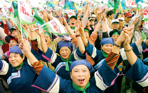 In each city and county, about 30,000 people joined in the DPP's parades, said DPP spokesman Cheng Wen-tsan (鄭文燦).
