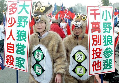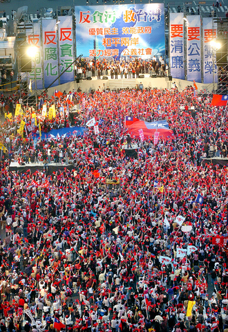 With the theme of "Oppose Corruption, Save Taiwan," the rally was designed to hammer away at the DPP government for its involvement in recent scandals such as the KRTC controversy, and call for voter support for pan-blue candidates in Saturday's elections.