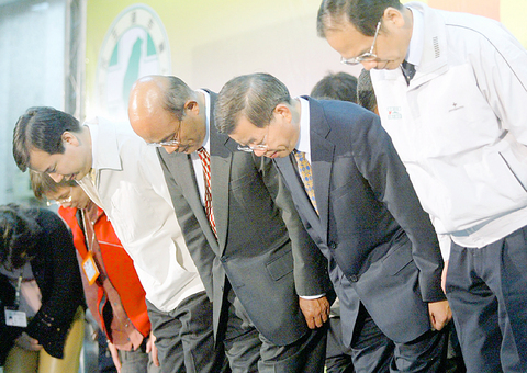 To express their regret over the defeat and accept responsibility for the outcome, Su, Presidential Office Secretary-General Yu Shyi-kun and Premier Frank Hsieh (謝長廷) bowed to the public three times.
