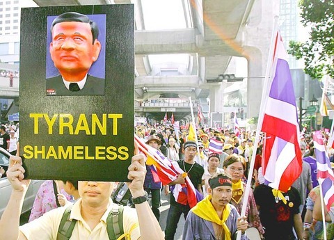 About 20,000 demonstrators swarmed the street outside the posh Siam Paragon shopping mall, which was closed in anticipation of the protest, said Colonel Pinit Maneerat, spokesman for Bangkok's Metropolitan Police.