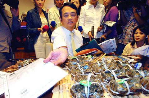 Meanwhile, the president of a company that imports hairy crabs from China said at a news conference yesterday that all the crabs that have been listed as "problematic" were distributed by the Taipei Farm Produce Marketing Co and that officials from the Taipei City Department of Health had inspected the shipment and determined that the amount of carcinogens they contained was negligible.