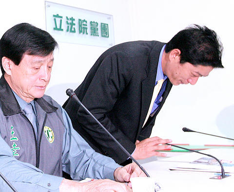 DPP caucus whip Wang Sing-nan (王幸男) told a press conference that although the caucus did not ask the pair to initiate the drill, it was willing to accept responsibility for the event.