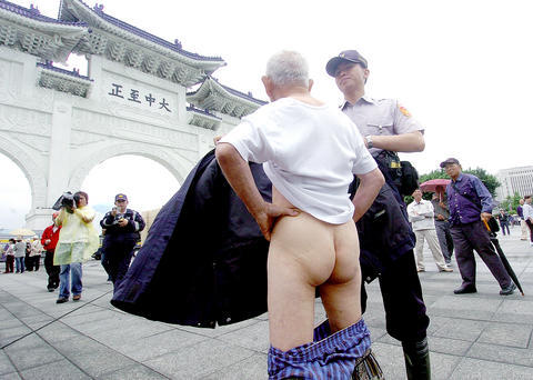 "The government set a bad example by damaging the legal system and deceiving the public ... We demand the removal of the plaque," he told the reporters, referring to the amendment to the Organic Statute of Chiang Kai-shek Memorial Hall (中正紀念堂組織條例) and a proposed statute concerning the organization of the Taiwan Democracy Hall.