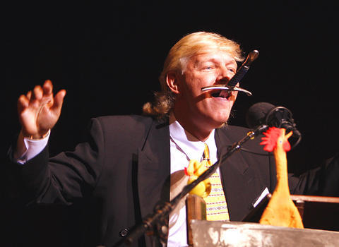 Although pelted by paper airplanes, as per tradition, each winner expressed delight at receiving the small trophies affixed with a chicken and an egg.