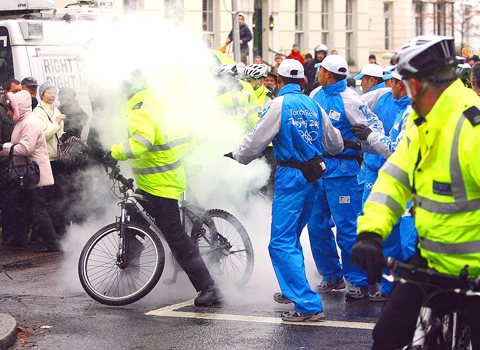 As many as 2,000 British police officers were out in force to protect the London torch procession.