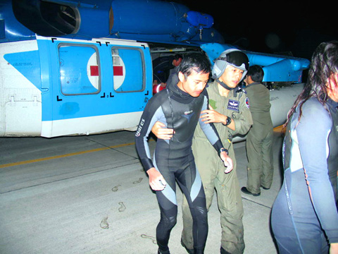 After the eight failed to return to the boat, the boat’s skipper reported their disappearance to the coast guard at Hengchun (恆春). Five helicopters and nine patrol boats took part in the rescue operation, while the divers’ relatives hired fishing boats to help with the search.