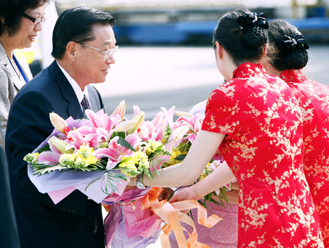 The delegation was welcomed upon its arrival by Zheng Lizhong (鄭立中), the executive deputy director of the Taiwan Affairs Office in China’s State Council.