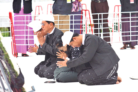 Security was also tight around the headquarters of the NLD, where 300 party members gathered yesterday morning, saluting the spot where the leaders were gunned down.