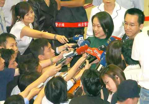 KMT legislators Chiu Yi (邱毅) and Lu Hsueh-chang (呂學樟) had earlier expressed dissatisfaction at the Special Investigation Panel’s decision not to take the couple for questioning directly from the airport.