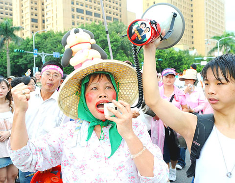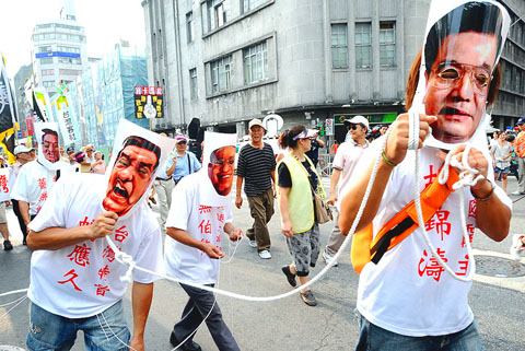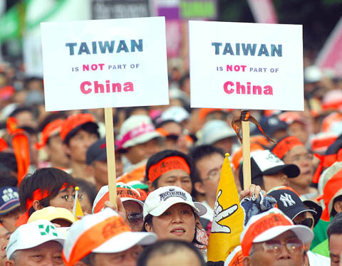 Chung Yi-jen (鍾逸人), 88, a retired factory worker from Changhua County, said: “In the past 100 days, many things Mr Ma has done have demonstrated that he is going to sell out Taiwan: from changing ‘Taiwan Post’ back to ‘Republic of China,’ to agreeing to attend the Olympics under the name ‘Chinese Taipei.’ Ma is selling out Taiwan by playing word games, but does he think that we are all idiots who can’t see through this?”