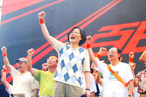 The rally reached a climax at 5:30pm when DPP Chairwoman Tsai Ing-wen (蔡英文) addressed the crowd.