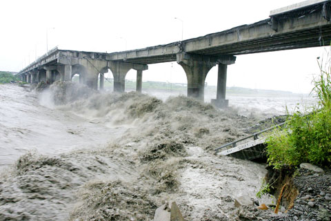 Kaohsiung County’s Chiashian Bridge (甲仙橋) on Provincial Highway 20 also collapsed on Sunday night after a pier tilted.