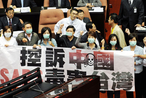 At a separate setting, DPP caucus whip William Lai (賴清德) said that if the NSB had found evidence China was behind the use of the SARS virus as a biochemical weapon, the government should represent Taiwanese SARS victims by asking for compensation from China.