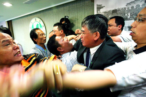 Huang and the protesters then rushed toward Hung, triggering a clash between protesters, DPP officials and office staff.