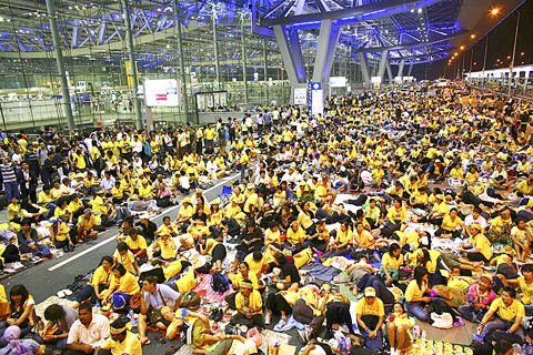 The Taipei Association of Travel Agents said about 1,000 Taiwanese travelers have been affected by the flight cancelations at Bangkok’s main airport, including about 500 who were scheduled to fly to Thailand yesterday and 400 who are stranded in Bangkok. Those stranded in Thailand may have to wait another day before they would be able to return, while tourists preparing to fly to Thailand may need to postpone their schedules for a few days, a spokesman for the association said.