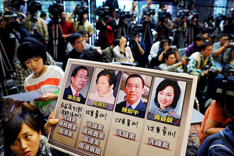 His wife Wu Shu-jen (吳淑珍), son Chen Chih-chung (陳致中), daughter-in-law Huang Jui-ching (黃睿靚) and 10 former presidential aides, associates and family members were also indicted on a range of charges.