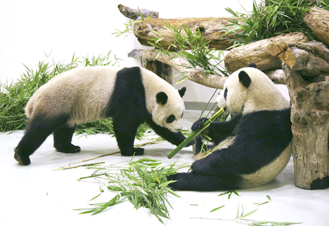 The pandas, whose Chinese names, when put together, mean “to reunite,” were offered to former Chinese Nationalist Party (KMT) chairman Lien Chan (連戰) during his visit to China in May, 2005.