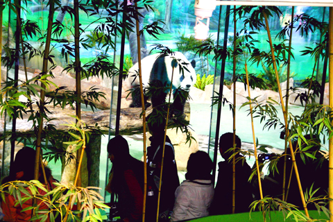 In anticipation of viewing the two giant pandas, Tuan Tuan (團團) and Yuan Yuan (圓圓), some visitors arrived at the zoo before daybreak yesterday. By 8:30am, before the gates of the zoo were even opened, hundreds of people were lined up outside.