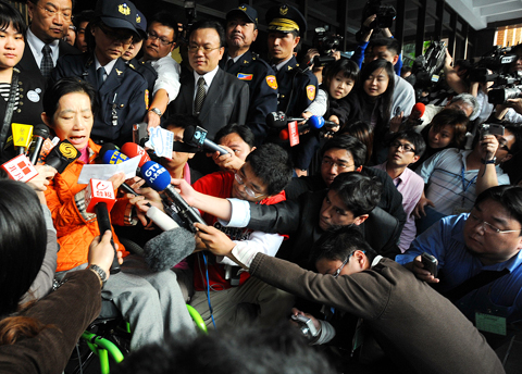 National Taiwan University Hospital sent two doctors, two nurses and an ambulance to the Taipei District Court as a precaution. Wu’s appearance yesterday was her first at the court since proceedings against her began in December 2006. She fainted during that session and was rushed to hospital.