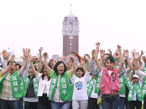 Tsai, former vice president Annette Lu (呂秀蓮), former premier Frank Hsieh (謝長廷), former premier Su Tseng-chang (蘇貞昌), Kaohsiung Mayor Chen Chu (陳菊) and the DPP’s 27 legislators spent the night on Ketagalan Boulevard. The DPP said more than 1,000 people stayed overnight.