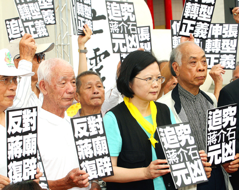 “Although the Ma government has proposed reinstating the title of Chiang Kai-shek Memorial Hall, it has never reviewed or apologized for the KMT’s violence,” Tsai said.