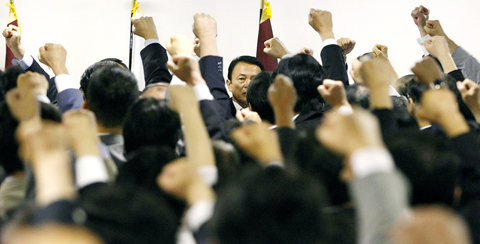Aso — a political blueblood from a top industrial family, known for his gruff demeanor — tried his best to rally the troops yesterday.