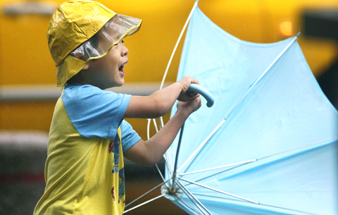 The approach of Morakot brought heavy rain to northern regions yesterday, including Taipei County and Hsinchu County.