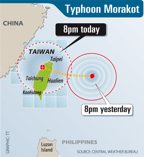 Morakot has the potential to become a stronger typhoon, said Chen Yi-liang (陳怡良), division chief at the bureau’s forecast center.