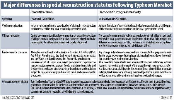 The DPP wants a minimum of NT$200 billion for reconstruction.