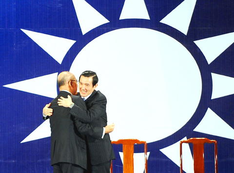 Ma thanked Wu for agreeing to take over as party chairman after he stepped down in 2006 over his alleged misuse of his special allowance fund as former Taipei mayor, and praised Wu for leading the party to win legislative elections and the presidential election.