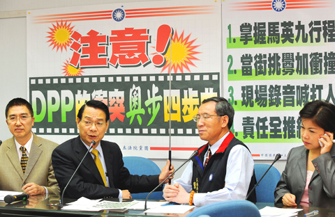 After provoking the KMT campaign team into scuffles, Hsieh and his supporters would videotape the clashes and later blame the clashes on the KMT and the police, Lee said.