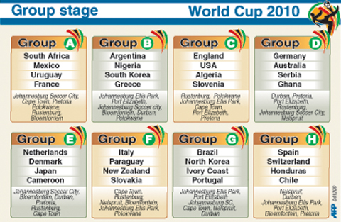 The draw, which saw the 32 qualified teams split into eight groups of four for the first round stage of the June 11 to July 11 tournament, laid down the battle lines for what will be the first World Cup to be played on African soil.