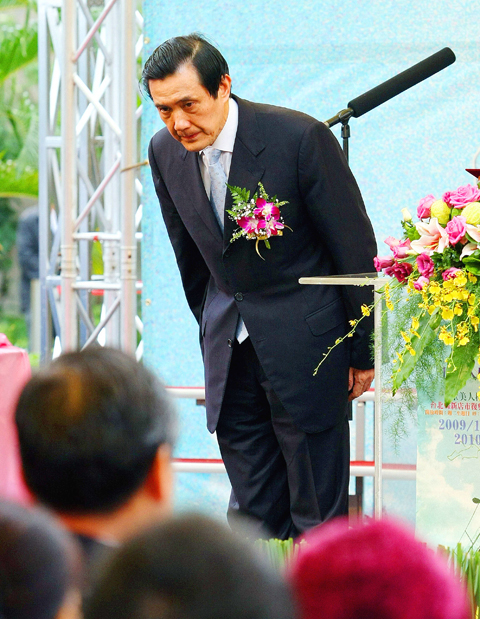 President Ma Ying-jeou (馬英九) yesterday bowed and apologized to political dissidents and their families for the abuses of the Chinese Nationalist Party (KMT) government during the White Terror era, adding that he would handle such matters more delicately after some dissidents criticized the government for embellishing the Taiwan Human Rights Memorial Park with contentious art.