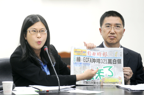 According to figures provided by the DPP caucus, visits to Taiwan by Chinese professionals have already doubled from 71,000 trips in 2008 to 155,000 in 2009. DPP Legislator Tsai Huang-liang (蔡煌瑯) said the figures could further increase to 400,000 visits this year if an ECFA is signed.