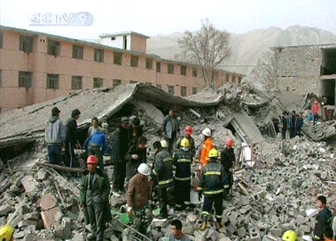 Panicked people, many bleeding, flooded the streets of a Qinghai Province township where most of the homes had been flattened. Students were reportedly buried inside several damaged schools.