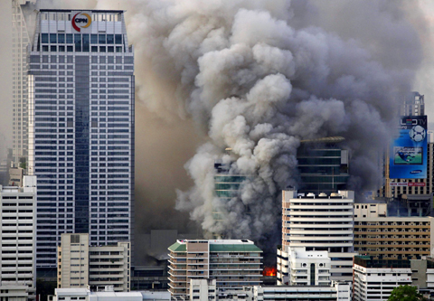Hours later its building was on fire. Its executives were evacuated by helicopter and police rescued other staff. The English-language Bangkok Post newspaper evacuated its staff after threats from the Red Shirts. A large office building down the street from the Post was set afire.
