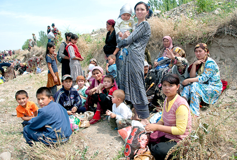 Thousands of Uzbek women and children have fled the violence to the nearby border with Uzbekistan, a reporter witnessed, raising the specter of a possible humanitarian crisis.