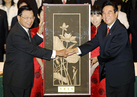 Taiwan’s Straits Exchange Foundation (SEF) Chairman Chiang-Pin-kung (江丙坤) and his Chinese counterpart, Association for Relations Across the Taiwan Strait (ARATS) Chairman Chen Yunlin (陳雲林), signed and exchanged the documents in a ceremony held at a hotel in Chongqing.
