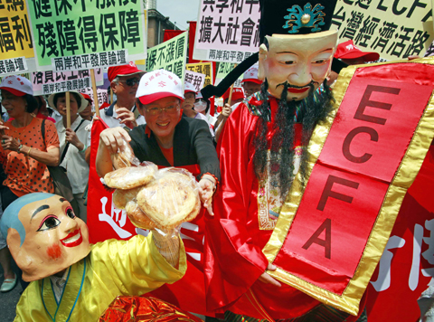 “Taiwan will have to one day pay the price for its reckless passage of the ECFA,” DPP Chairperson Tsai Ing-wen (蔡英文) said, one day after the KMT-dominated legislature approved the bulk of the trade pact. “This important piece of national policy should have been carefully considered, transparent and subject to legislative oversight, but we did not see this take place.”