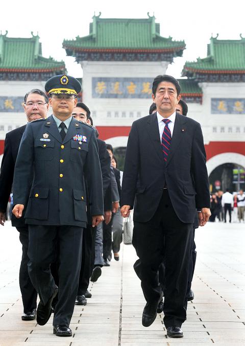 Aside from paying a visit to former president Lee Teng-hui (李登輝), Abe also visited the Martyrs’ Shrine (忠烈祠) where people who died in the state’s service are enshrined.
