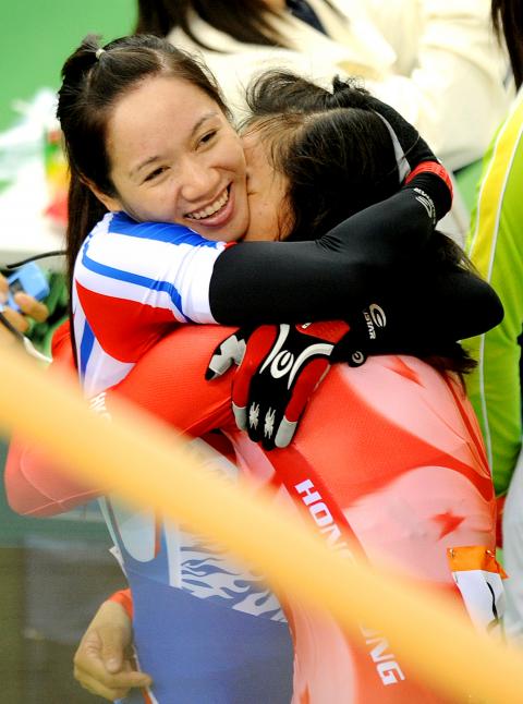 Hsiao earned Taiwan’s first medal in a time of 35.440 seconds. Hong Kong’s Lee Wai-sze (李慧詩) won gold with 33.945 seconds, while Guo Shuang (郭爽) of China won silver.