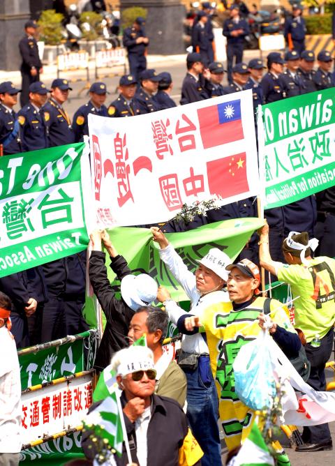 “It’s a fact — Taiwan and China are two separate countries. Each side of the Taiwan Strait is an independent country,” said Huang Yung-tien (黃永田), a retired pilot from Greater Tainan. “Why must Chen Yunlin come here acting otherwise?”