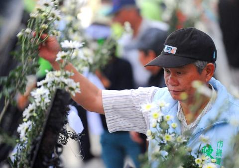 Protesters yesterday threw flowers at the motorcade of Association for Relations Across the Taiwan Strait Chairman Chen Yunlin (陳雲林) in an attempt to draw attention to Beijing’s crackdown on pro-democracy activists and rights lawyers.