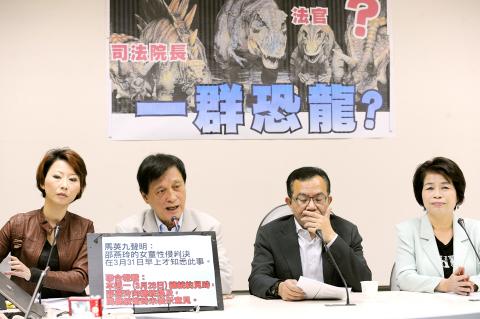 In reference to the so-called “dinosaur” judges deemed unfit for the positions, DPP Deputy -Secretary-General Wong Chin-chu (翁金珠) called the Ma administration “an administration of dinosaurs.”