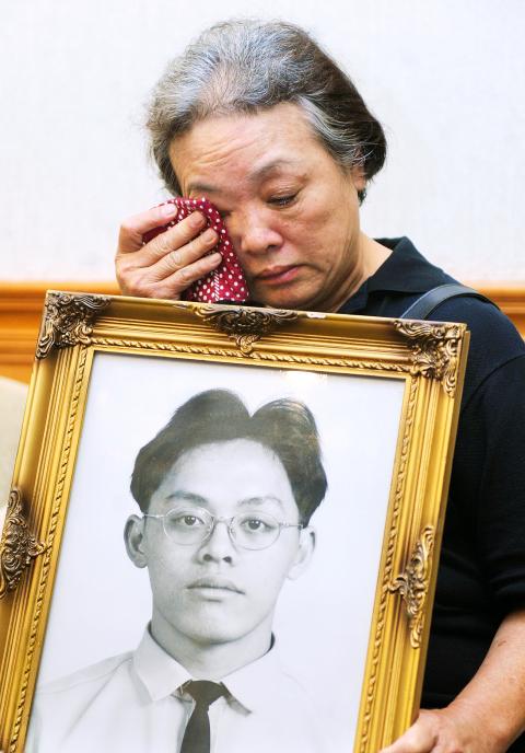 Chiang’s mother, Wang Tsai-lien (王彩蓮), and her attorney, Greg Yo (尤伯祥), held a press conference after the ruling yesterday.