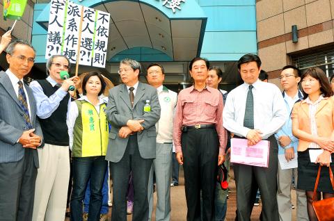 “It’s unacceptable that Wang’s nomination has been put on hold because of slander accusations, despite the fact he won the primary,” former Tainan County commissioner Mark Chen (陳唐山) said, speaking in support of Wang alongside two DPP legislators and three local councilors.