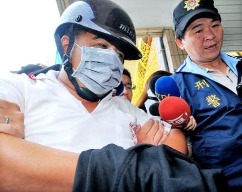 Hsieh Tung-hsien (謝東憲) was charged with rape and fled his apartment after being released on bail last week. Police arrested him near a cemetery in Tucheng District (土城), New Taipei City (新北市), at 11am yesterday, where he was allegedly waiting for a friend he had contacted to lend him money for his escape.