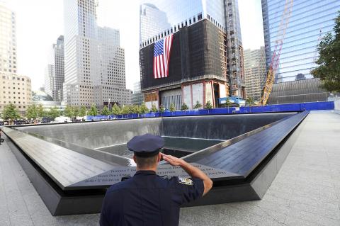 US President Barack Obama visited the North Memorial Pool, which sits in the footprint of the north tower. Obama walked around the pool hand-in-hand with first lady Michelle Obama, former US president George W. Bush and his wife, Laura, as an eerie silence fell over Lower Manhattan, which was devoid of traffic and where construction stopped for the morning.
