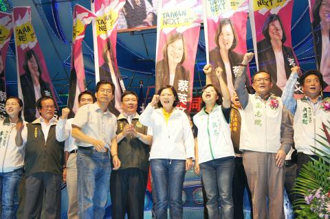 For the first time in the DPP’s presidential campaign, the so-called “three Kings and one Queen” of party heavyweights, including former vice president Annette Lu (呂秀蓮) and former premiers Yu Shyi-kun (游錫堃), Frank Hsieh (謝長廷) and Su Tseng-chang (蘇貞昌), appeared on stage to endorse Tsai and to show party solidarity.